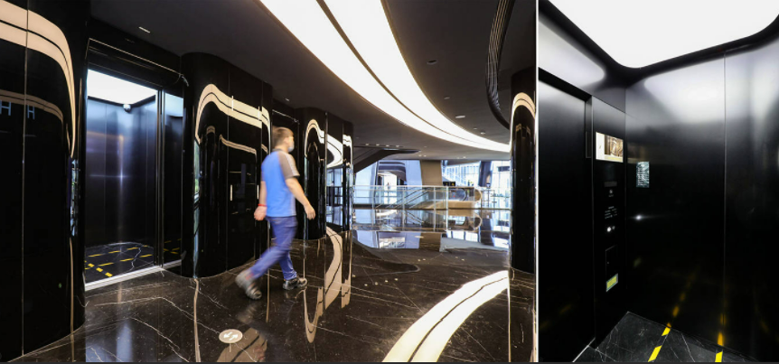 名嘉电梯爲該項目提供19台電扶梯,其中包括8台雙轎廂電梯。
