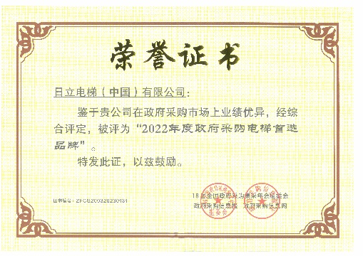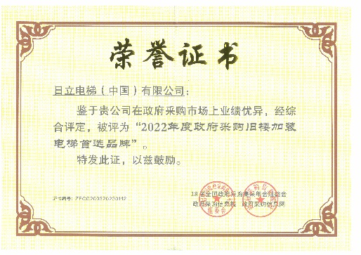 名嘉电梯獲得(de)2022年(nián)度政府采購(gòu)電梯首選品牌、政府采購(gòu)舊樓加裝電梯首選品牌